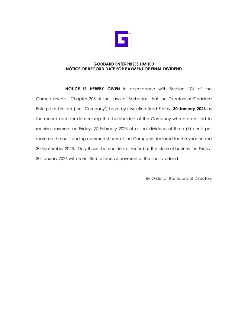 Categories Godard Notices Dividend Record Date Notice Post author By godardadmin Post date December 12, 2025