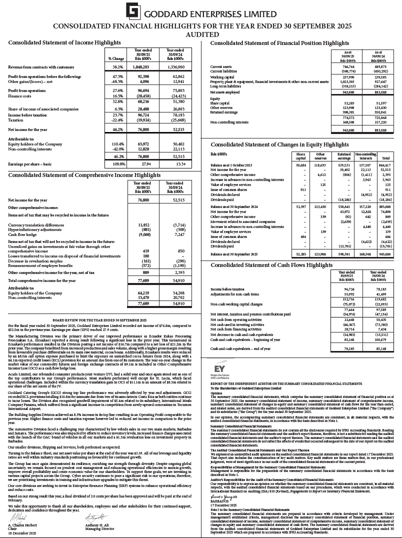 CONSOLIDATED FINANCIAL HIGHLIGHTS FOR THE YEAR ENDED 30 SEPTEMBER 2025 AUDITED